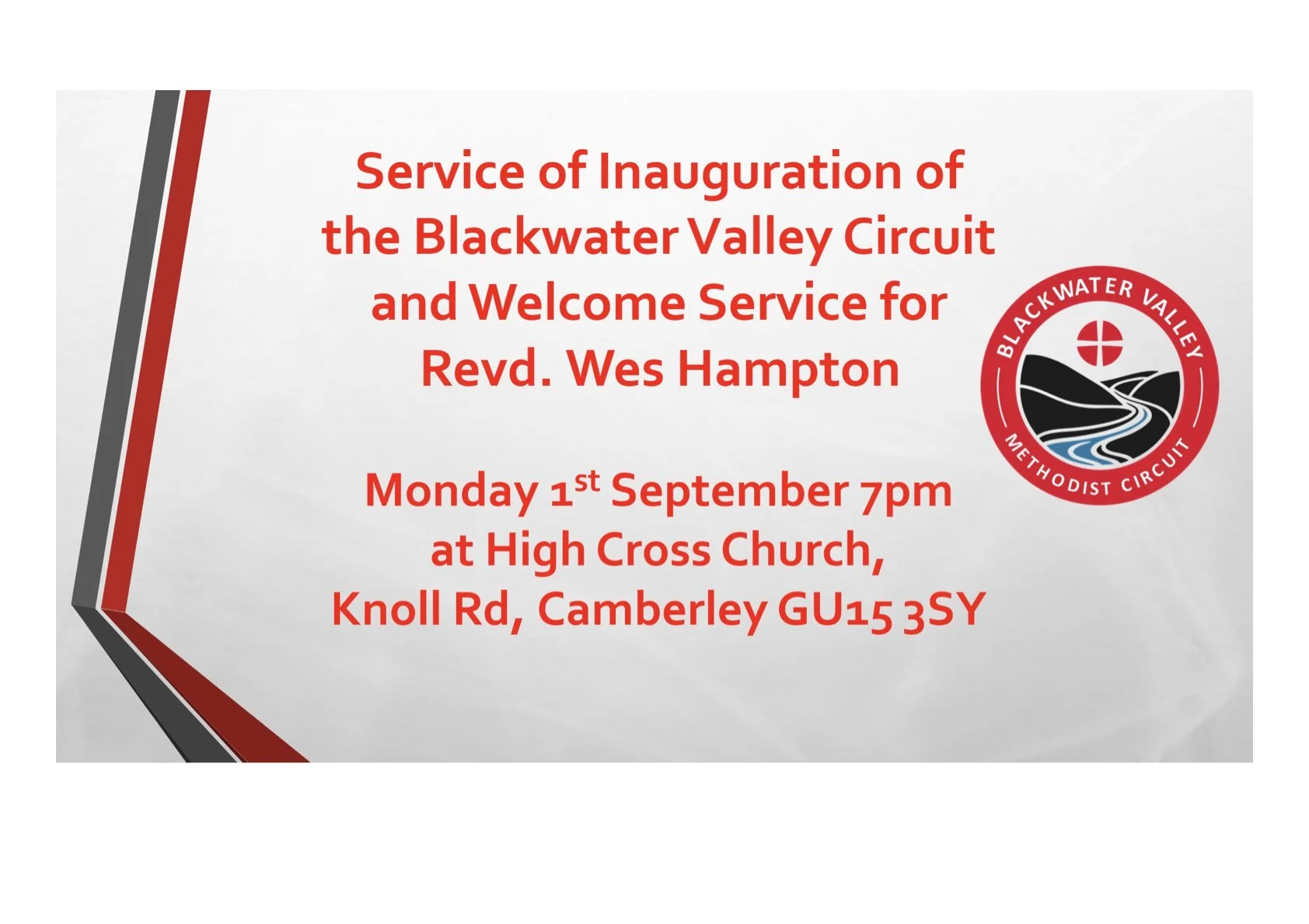 We will be welcoming our new circuit ministers and celebrating the formation of the Blackwater Valley Circuit. Join us at High Cross Methodist /URC Church for this special evening of fellowship and worship.